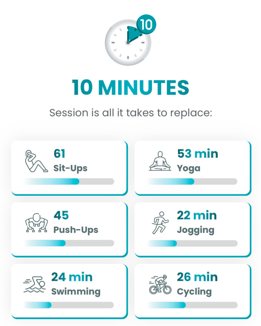 The low-impact workouts with our device enhance cardiovascular health, gradually increasing your energy levels and stamina so you feel more active and energized.